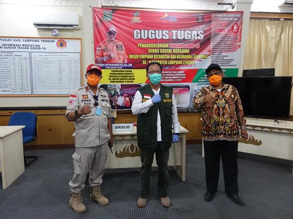 Bupati Lampung Tengah, Bapak Loekman Djoyosoemarto, bersama dengan Ketua DPRD Kabupaten Lampung Tengah, menerima dan mendampingi kunjungan Ketua DPRD Provinsi Lampung dalam rangka meninjau Posko Gugus Tugas Pencegahan dan Penanggulangan Covid 19, serta memberikan laporan data perkembangan giat pencegahan dan penanggulangan Covid 19 di Kabupaten Lampung Tengah, pada tanggal 21 April 2020