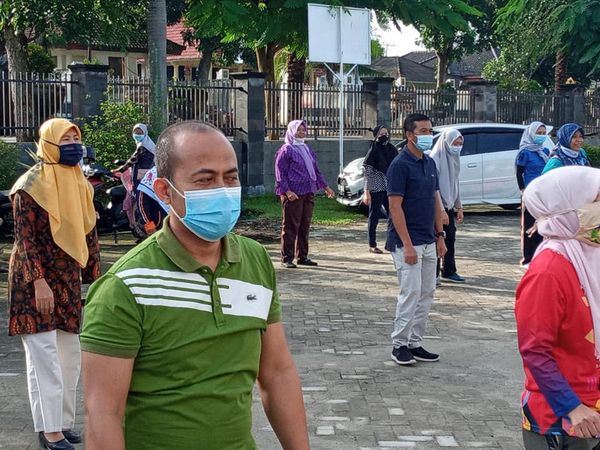melaksanakan senam pagi bersama, dihalaman kantor BAPPEDA Kab. Lampung Tengah, jumat 05 februari 2021.